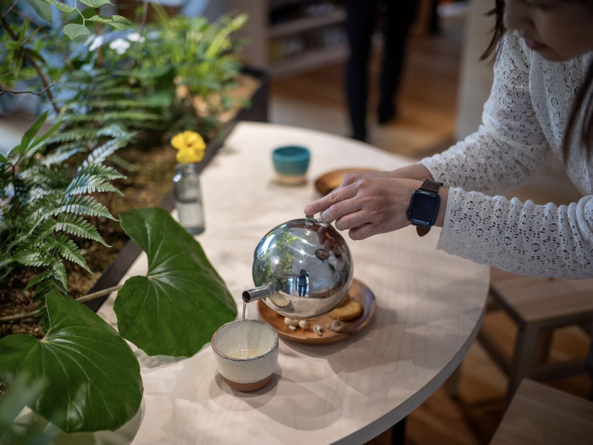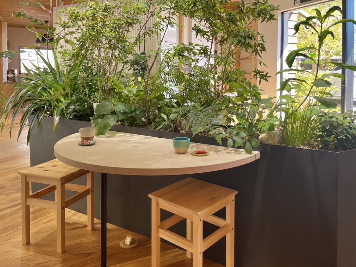 このスペースでは目の前で緑を感じられて、部屋の中なのに庭でお茶している気分でとっても落ち着きます🌿
