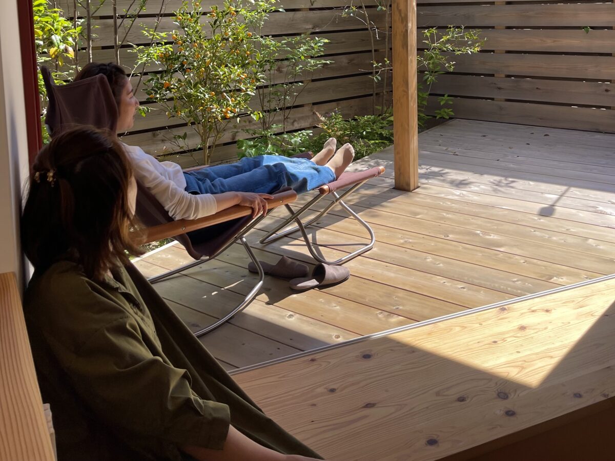 昼間の暖かい時間にウッドデッキへ出てみると、