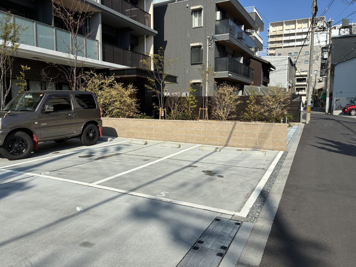 駐車スペースと共用部の距離感を意識した外構計画です。