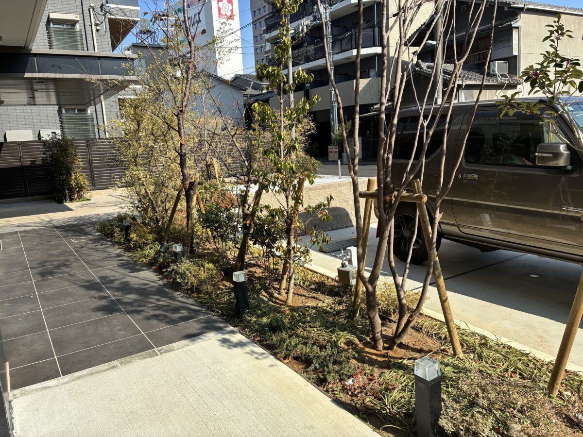 外構|植栽で整え、安全性で守るマンション外構